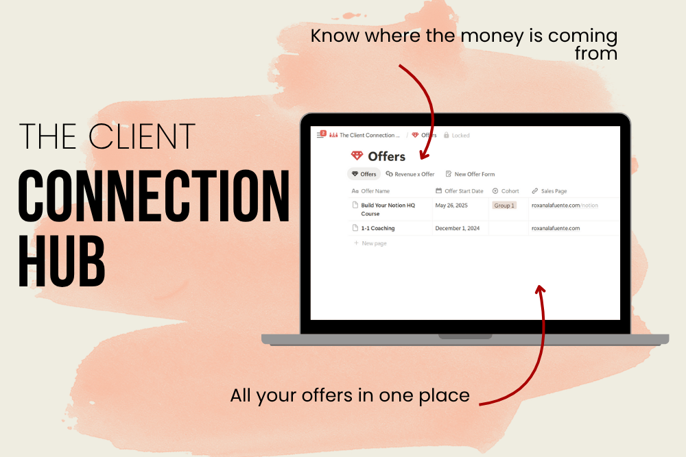 Your all-in-one Notion dashboard to finally feel in control of your 1:1 clients, group programs, and digital course enrollments.